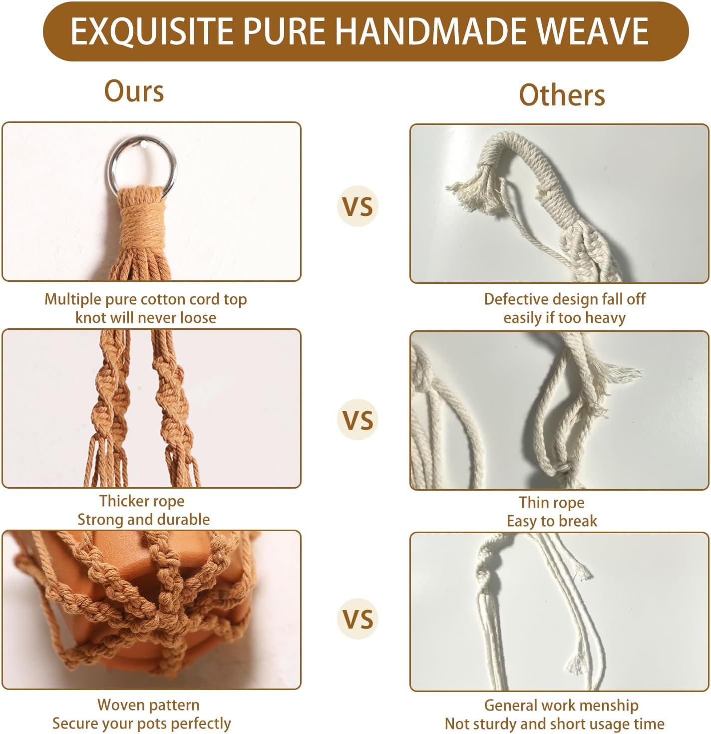 - HANDMADE WEAVING CRAFT - Hanging plant holders made from eco-friendly recycled cotton rope and metal ring, It has a strong flexible woven design, sturdy and durable, accommodates planters of all shapes and sizes, you can take them home for your plants with confidence